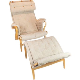 Vintage Pernille fauteuil met kruk van Bruno Mathsson en Dux 1960