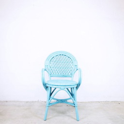Vintage blauw geweven rotan fauteuil, 1990Vintage blauw geweven rotan fauteuil, 1990