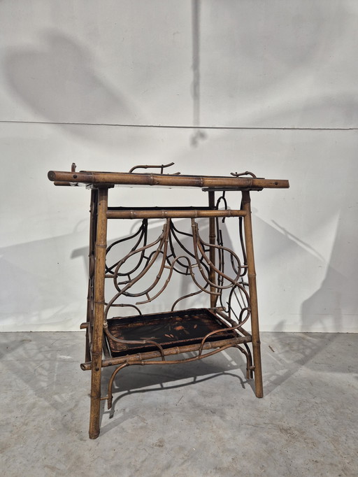 Vintage bijzettafel van bamboe en rotan - jaren 1960
