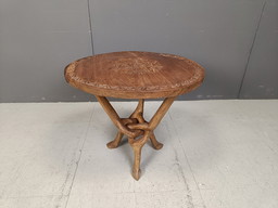 Antiek art nouveau bijzettafeltje met afneembaar messing dienblad