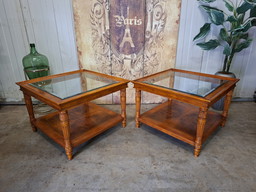 Vintage eikenhouten bijzettafels - Massief eiken mimiset jaren 70
