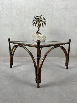 Vintage Hollywood Regency bamboevormige Metaal en Glas salontafel, Duitsland, jaren 70