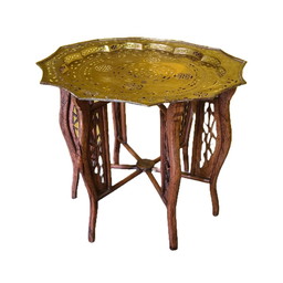 Vintage, imitatiebamboe messing en glazen bijzettafel, jaren 40
