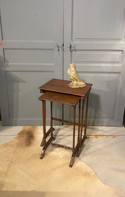 Stel Edwardian bijzet tafeltjes met bloemen Stel Edwardian bijzet tafeltjes met bloemen