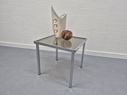Chroom buisframe bijzettafel. Vintage salontafel, rookglas.