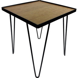 Vintage bijzettafel van eikenhout en zwart metaal, jaren 1950Vintage bijzettafel van eikenhout en zwart metaal, jaren 1950