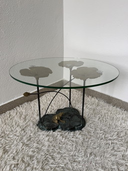 Vintage bronzen waterlelies salontafelVintage bronzen waterlelies salontafel