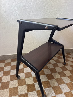 Wengé Houten Sidetable, Op Dun Stalen Frame