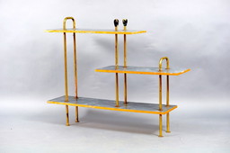 Grote sidetable, haltafel, wandconsole met marmeren blad afm. 153x60cm en 88cm hoog.