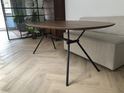 Jaren 50 eet/salontafel, notenhout, in hoogte verstelbaar, tafelblad gerestaureerd