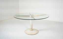 Massimo Vignelli voor Casigliani, eettafel van glas en travertijn, 1980