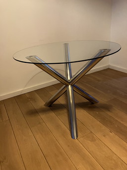 Massimo Vignelli voor Casigliani, eettafel van glas en travertijn, 1980