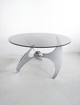 Scandinavische ronde vintage tafel in metalen tulp, 1970