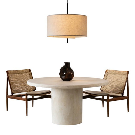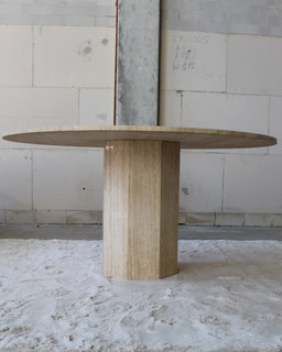 ##Ronde Travertin eettafel Een ronde Travertin eettafel is een elegante en tijdloze toevoeging aan elke eetkamer. De ronde vorm creëert een gezellige en intieme eet-ervaring, waardoor iedereen gemakkelijk kan converseren en de maaltijd kan delen. Travertin is een duurzaam materiaal, dus een ronde eettafel van deze steen zal niet alleen mooi maar ook praktisch zijn. De natuurlijke patronen van de steen geven het ontwerp een unieke en verfijnde toets, waardoor het een pronkstuk wordt in elk huis. Een ronde eettafel van travertijn is een veelzijdige en klassieke keuze waar je nog jarenlang plezier van zult hebben.