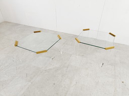 Halverwege de eeuw Italiaanse salontafel van messing en rookglas