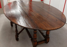 Tafel van massief eikenhout met historisch industrieel Singer onderstel