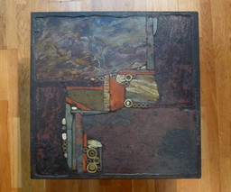 Prachtig Mid Century Modern Messing Bijzettafeltje Met Mozaïek Oppervlak van Münchener Zierspiegel