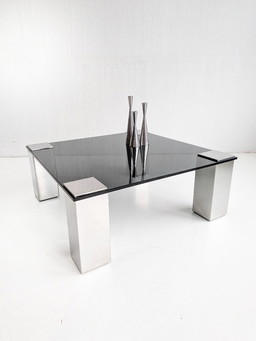 Italiaanse salontafel in mid-century modern stijl met chroom en rookglas