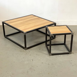 Vintage mid century Hoekbankset met hoektafel en salontafel