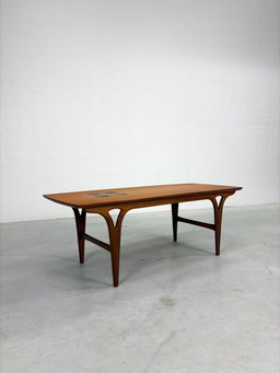 Originele brutalistische salontafel, teakhout uit het midden van de vorige eeuw, keramische tegels