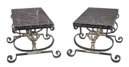 Vintage Carrara marmer en zwart ijzeren salontafel, Italië 1960