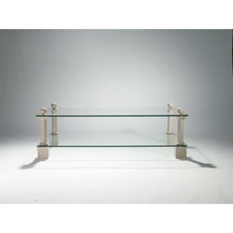 Vintage salontafel met kolompoten van chroom en messing, 1970
