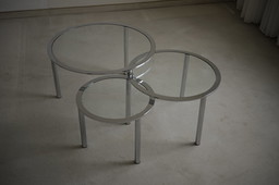 Verchroomde glazen tafelsetVerchroomde glazen tafelset
