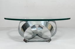 c. 1975 - Modernistisch Chroom en Glazen Salontafel - Frankrijk/België