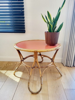 LAGE TAFEL RONDE Rotan en EIK VINTAGE