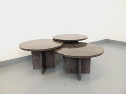 Set van drie vintage, in elkaar passende ronde salontafels van graniet uit de jaren 70 en 80.Set van drie vintage, in elkaar passende ronde salontafels van graniet uit de jaren 70 en 80.