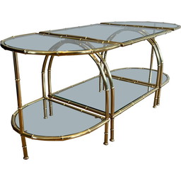 Vintage salontafel met dubbel blad in gepolijst brons en glas, 1970