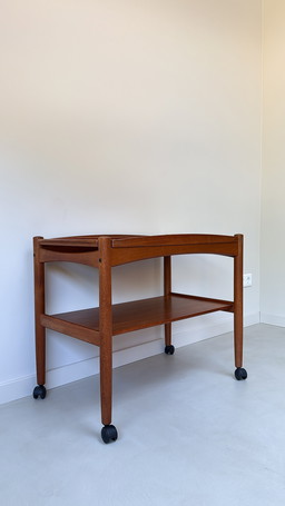 Rollende bijzettafel, serveerwagen, teak, 1960