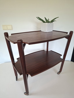 Rollende bijzettafel, serveerwagen, teak, 1960