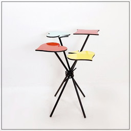 Vintage plantentafeltje met betegeld mozaïek bovenblad in roze en zwarte kleur, jaren 1960