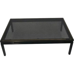 Vintage salontafel met rotanrand, Frankrijk 1970Vintage salontafel met rotanrand, Frankrijk 1970