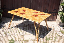 Eettafel van rotan en keramiek van Audoux MinetEettafel van rotan en keramiek van Audoux Minet