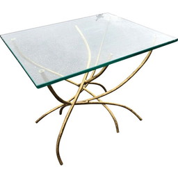 Vintage glazen en gepatineerde salontafel, 1970Vintage glazen en gepatineerde salontafel, 1970