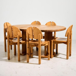 Zeldzaam ensemble: tafel van FABIANART en 6 stoelen van Vereinigte Werkstätten, jaren 1980Zeldzaam ensemble: tafel van FABIANART en 6 stoelen van Vereinigte Werkstätten, jaren 1980