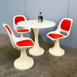 Set van 3 tulpenstoelen en tafel, kunststof, 1970