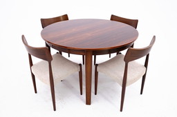 Ronde tafel met vier stoelen uit de jaren 1960, Denemarken.