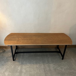 Houten salontafel, metalen pootHouten salontafel, metalen poot