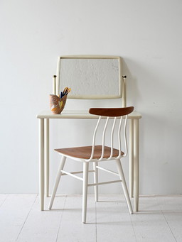 1960S Vintage houten kaptafel met verstelbare spiegel, wit geschilderd kaptafeltje