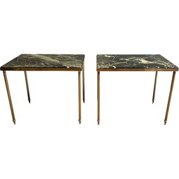 Paar vintage messing bankeinden met groen marmeren blad, jaren 1940