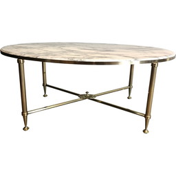 Vintage ovale salontafel in messing en Carrara marmer van Maison Jansen