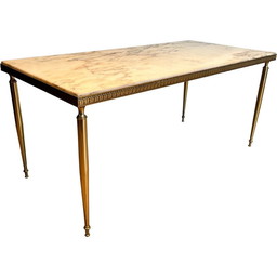 Vintage messing salontafel met marmeren blad, 1940