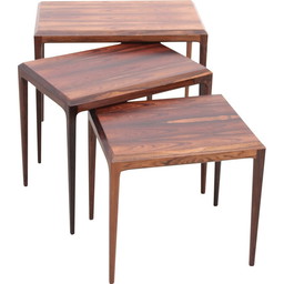 Scandinavische vintage nesttafels in Rio palissander van Johannes Andersen