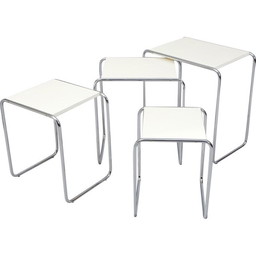 Vintage nesttafel van wit verchroomd staal en gelakt hout van Kovona, 1950
