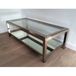 Franse vintage salontafel in chroom en messing, 1970Franse vintage salontafel in chroom en messing, 1970