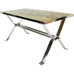 Vintage salontafel met keramisch blad, België 1960