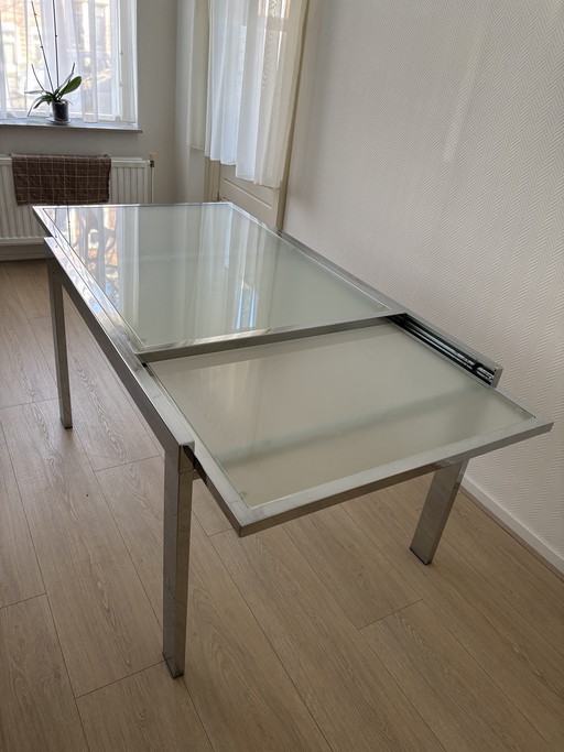 Vintage chrome & glas eettafel